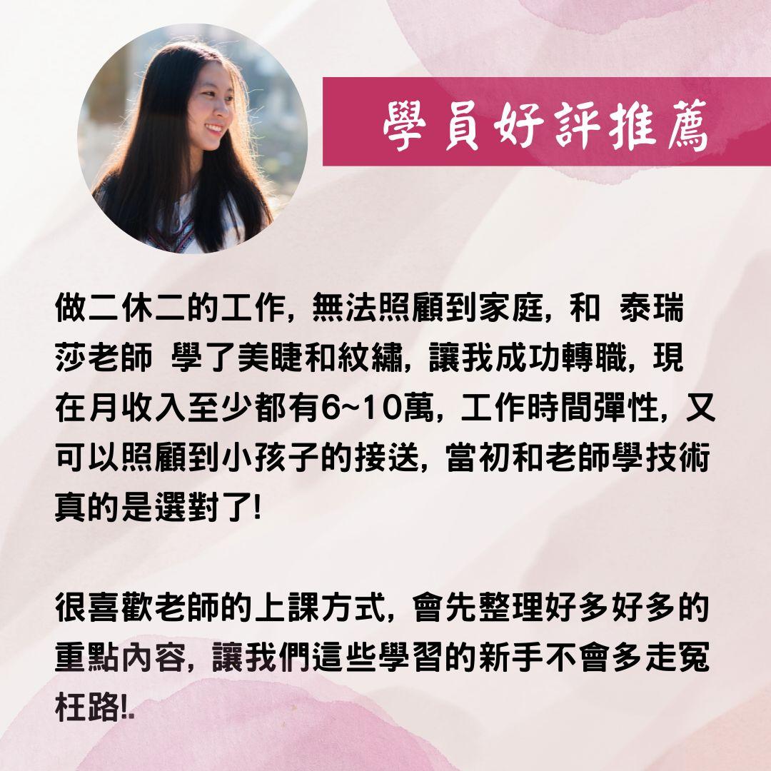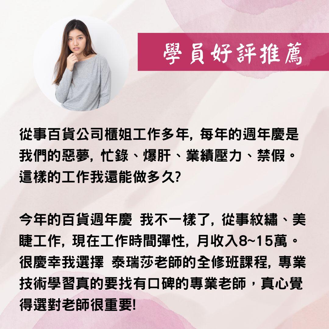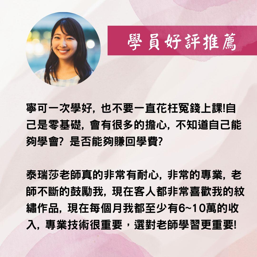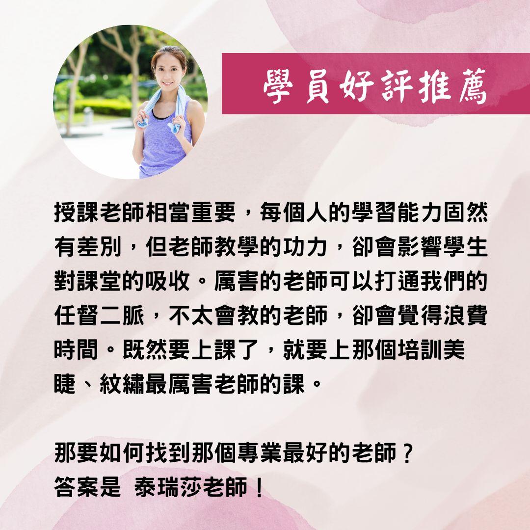 想要從事美的行業嗎?歡迎您到泰瑞莎國際美學,提供專業的新竹紋繡課程,老師的紋繡經驗豐富,能夠帶領學員學習到最紮實的技術,讓您能夠成為獨當一面的紋繡達人。採取小班制教學,老師以不藏私的方式指導,讓您收穫滿滿,能夠學習一技之長,老師的新竹紋繡教學方式認真有耐心,聰明的消費者可千萬別錯過。